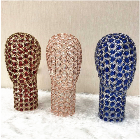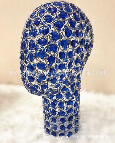 Colore del nastro con il cappello dell'esposizione del diamante artificiale blu reale e la testa del manichino della parrucca