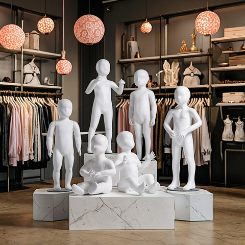 गर्म बिक्री पूरी तरह से उज्ज्वल सफेद फिबरग्लास बच्चों के कपड़े के लिए मैनीक्विन बुटीक प्रदर्शित